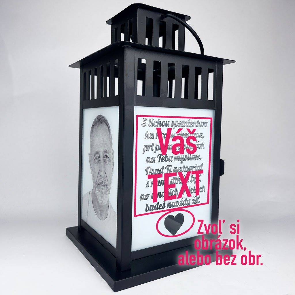 Lampáš s fotografiou a vlastným textom, farba: čierny, biely